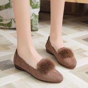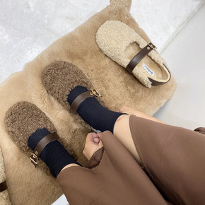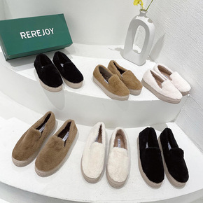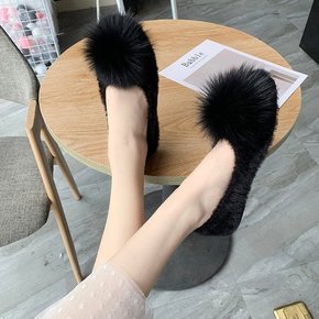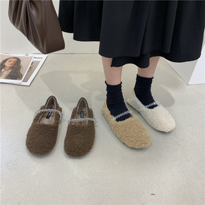 跨境2021秋冬新款毛绒单鞋女懒人一脚蹬圆头棉鞋毛...