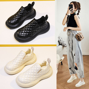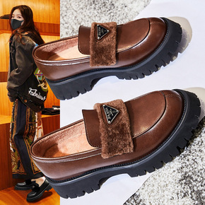 英伦小皮鞋女2022秋冬新款日系百搭一脚蹬粗跟jk...