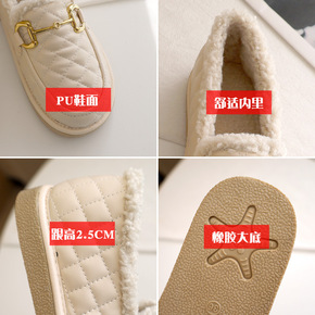 平底毛豆新款豆鞋懒人冬加绒羊羔脚蹬棉鞋鞋女一穿女外...