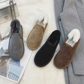 羊毛口雪地靴女一脚蹬2020新款网红面包鞋加厚低帮...