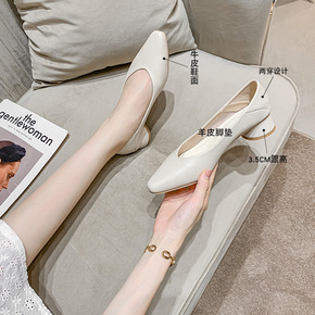 春季新款尖头小众浅口羊绒面OL职业办公室工作鞋6C...