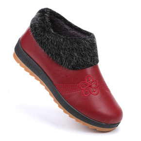 冬季女士老北京布鞋防滑保暖一脚蹬革拖中老年人PU面...