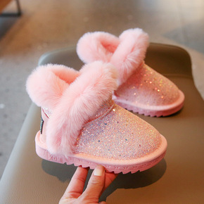女童雪地靴2021新款冬季儿童靴子加绒亮片公主毛毛...