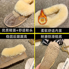 新款时尚棉鞋女大毛口雪地靴懒人拖一脚蹬女靴...