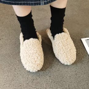 毛毛鞋女冬外穿网红显瘦2021新款秋冬加绒豆豆羊羔...