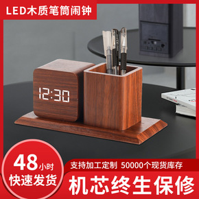 木制笔筒电子钟创意闹钟时尚学生数字静音迷你电子钟摆...