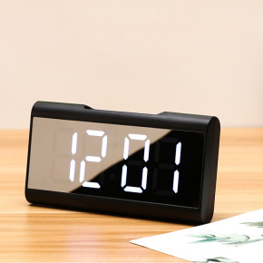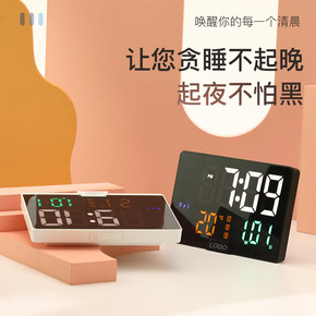 新款跨境LED简约镜面数字时钟学生化妆镜聪明电子床...