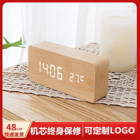 厂家批发热卖木制LED闹钟声控木头闹钟创意可爱电子...