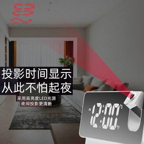 静音电子数字时间温度日历网红镜面白黑色大面积投影红...