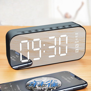 创意木质蓝牙音箱电子钟 多功能带LED木质闹钟QI...