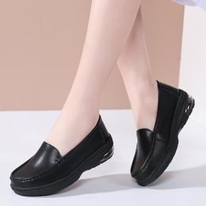 吸汗不臭脚护士鞋白色真皮平跟软底女单鞋 医院院 牛...