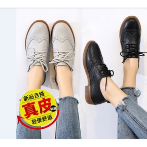 双系带厚底ins潮鞋2021秋冬爆款鞋女真皮百搭运...