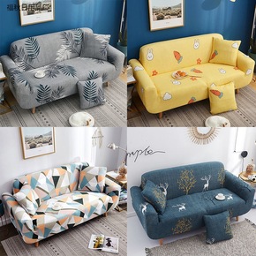 现代简约清新田园牛奶丝数码印花防猫抓弹力万能罩沙发...
