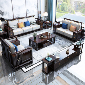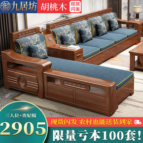 胡桃木全实木沙发组合现代简约中式客厅储物家具农村大...