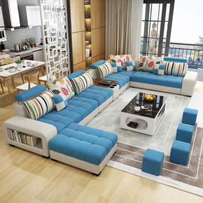 免洗科技布沙发小户型现代简约乳胶布艺客厅组合家具极...