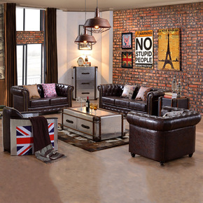 美式乡村经典拉扣头层牛皮售楼部沙发客厅酒吧咖啡厅欧...