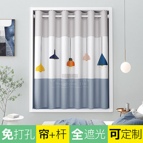 全遮光窗帘2021年新款免打孔安装北欧简约卧室客厅...