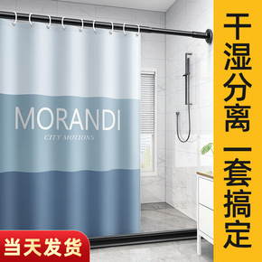 卫生间挡水浴帘套装浴室免打孔窗帘布加厚防水隔断洗澡...