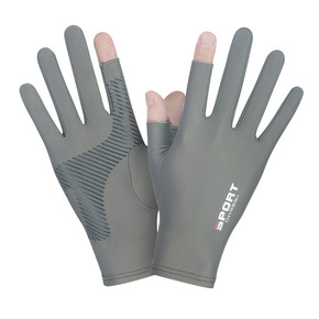 防晒防滑手套男女夏露指薄款冰丝开车漏二指钓鱼半指骑...