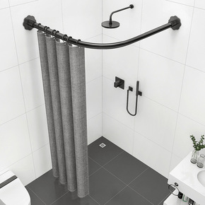 免打孔弧形杆卫生间防水布浴帘套装U型洗澡淋浴房隔断...