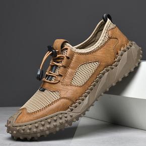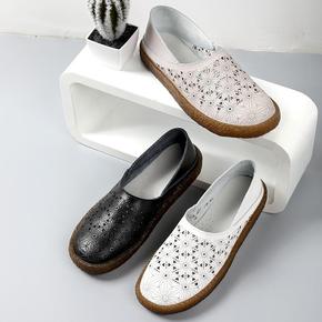 头层牛皮白色男鞋透气男士休闲真皮凉鞋镂空洞洞鞋豆豆...