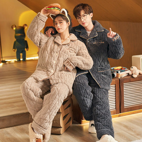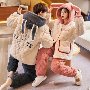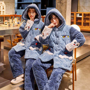 2021冬季三层加棉加厚睡衣套装冬天保暖珊瑚绒情侣...