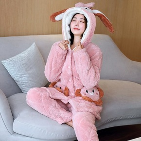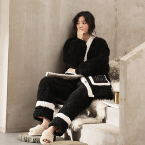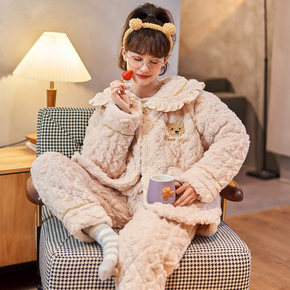 法兰绒睡衣女秋冬款冬季加厚加绒夹棉层家居服保暖珊瑚...