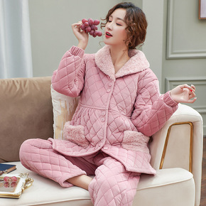 睡衣女冬季新款珊瑚绒韩版保暖三层夹棉大码可外穿女士...