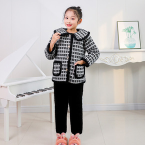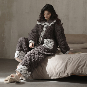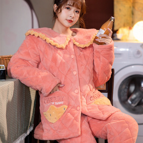 2021年新款珊瑚绒冬季睡衣女甜美三层夹棉保暖女士...