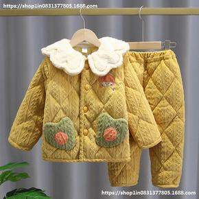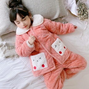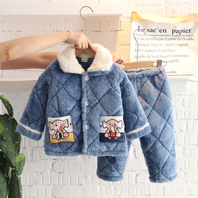 儿童冬季加厚三层夹棉法兰绒睡衣男女童加绒宝宝珊瑚绒...