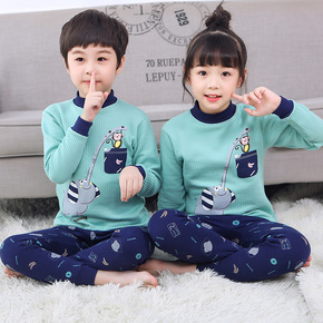 儿童保暖内衣套装男童中领加厚睡衣套装冬季三层夹棉女...