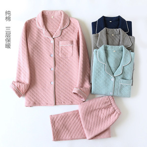 睡衣女冬三层加厚加绒珊瑚绒夹棉睡衣女士冬季保暖棉袄...