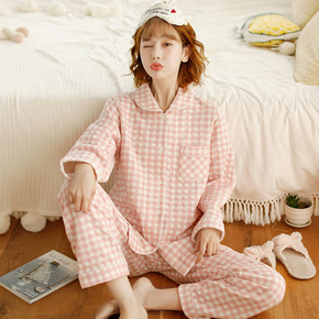 韩版睡衣女冬天三层加厚夹棉珊瑚绒套装少女宽松加大码...