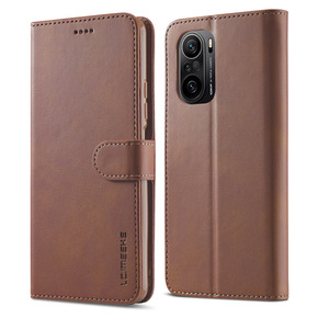 适用小米POCO F3复古小牛皮纹翻盖钱包支架手机...
