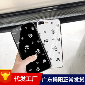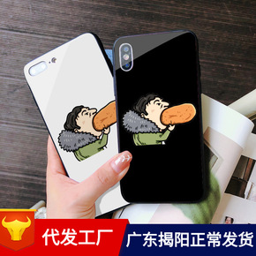 苹果XSMAX手机壳潮牌文字iphone6彩绘玻璃...