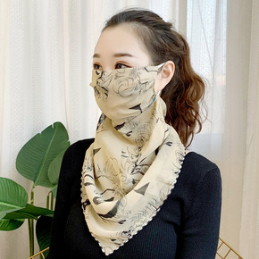 夏季防晒口罩女挂耳三角巾薄款丝巾面纱护颈防紫外线遮...
