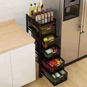 抽屉式厨房置物架落地多层转角架可抽拉夹缝收纳架蔬菜...