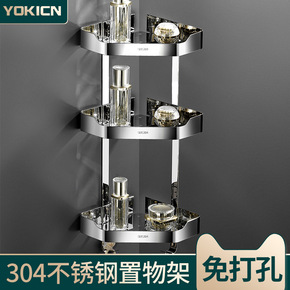 卫生间置物架免打孔壁挂式厕所转角墙上304不锈钢浴...