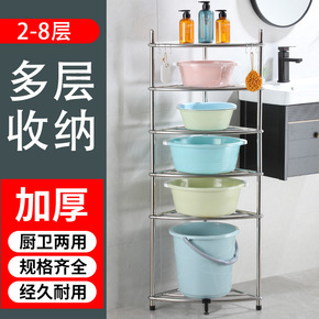 厨房加厚不锈钢置物架落地式多层收纳架分层伸缩三角架...