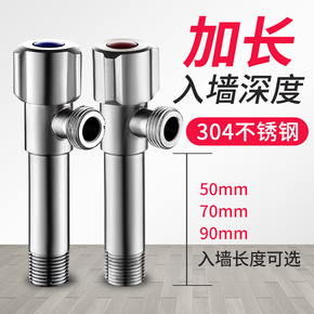 304不锈钢三角阀热水器阀门冷热加厚加长入墙4分家...
