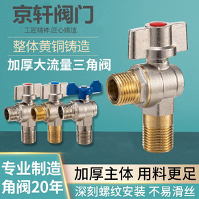 全铜三角阀红冲冷热水一进一出加厚出水阀...