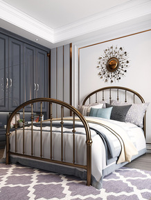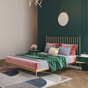 北欧铁艺软包单人床 家用卧室简约1.8米双人床酒店...