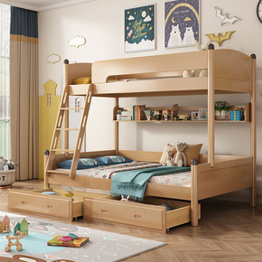 两层儿童床北欧全实木高低床母子床成年子母床上下床双...