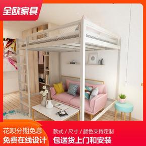 全欧高架床简约铁艺床多功能床省空间铁架床上床下空小...