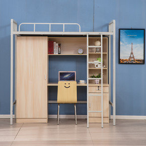 北欧铁艺上床下桌高架床公寓宿舍上下铺铁架床小户型省...