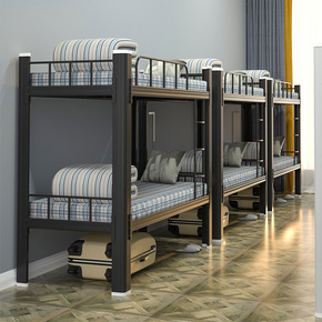成都钢制双层床宿舍上下铺员工高低铁床铺公寓铁架子床...