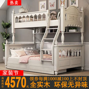 外贸白蜡木全实木高低床双层上下儿童床可拆分白色子母...