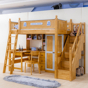 儿童实木高低床双层床上床下桌衣柜床带书桌上下铺高架...
