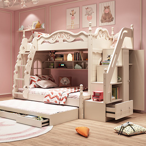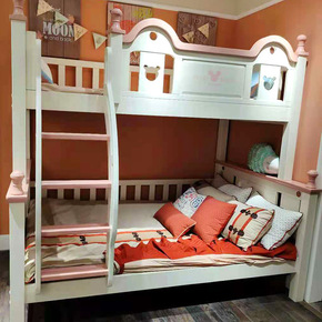 新款米奇子母床全实木胡桃木粉色高低床蓝色男孩上下铺...