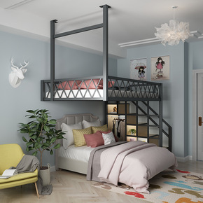 省空间阁楼床铁艺高架床复式上床下桌公寓小户型铁架床...